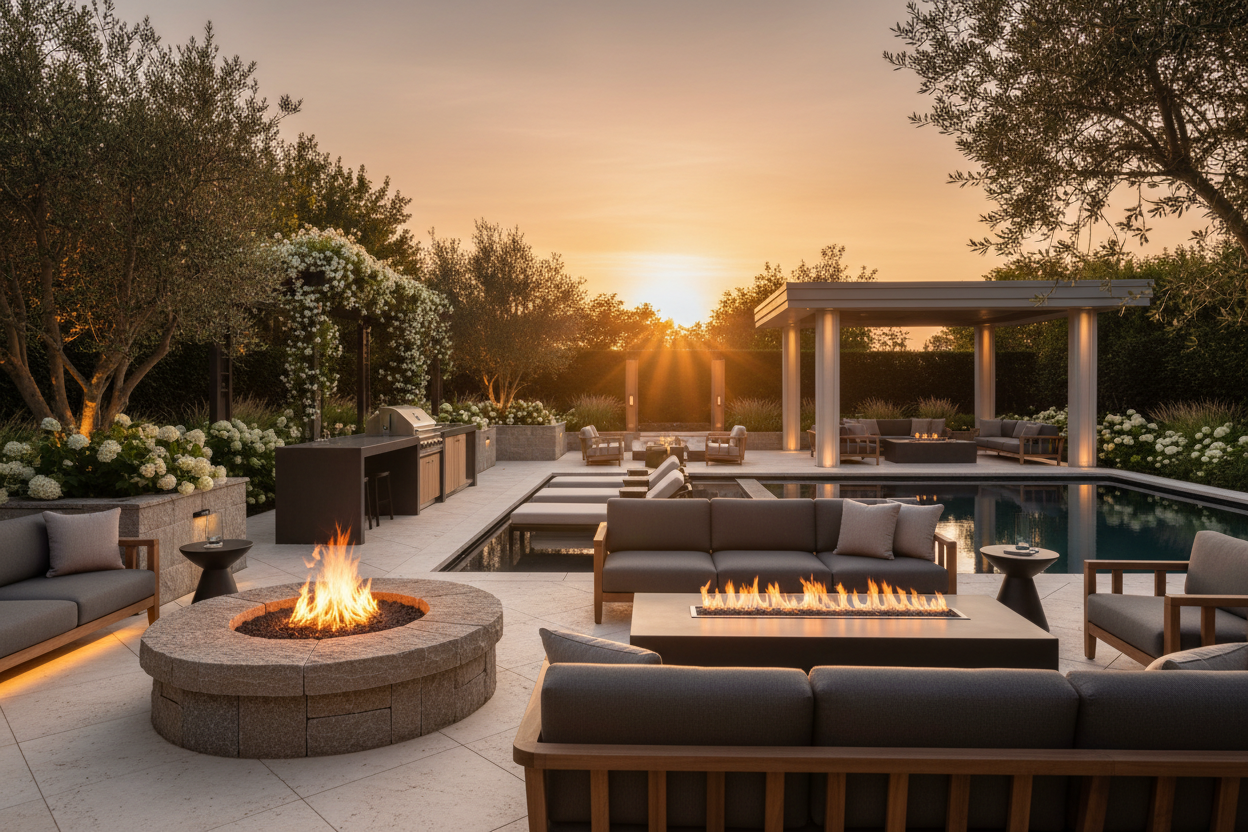 Our collection brings together refined fire features and architectural structures designed to elevate the modern backyard. Each piece is built with premium materials, meticulous attention to detail, and a commitment to creating spaces that invite connection, comfort, and lasting beauty.