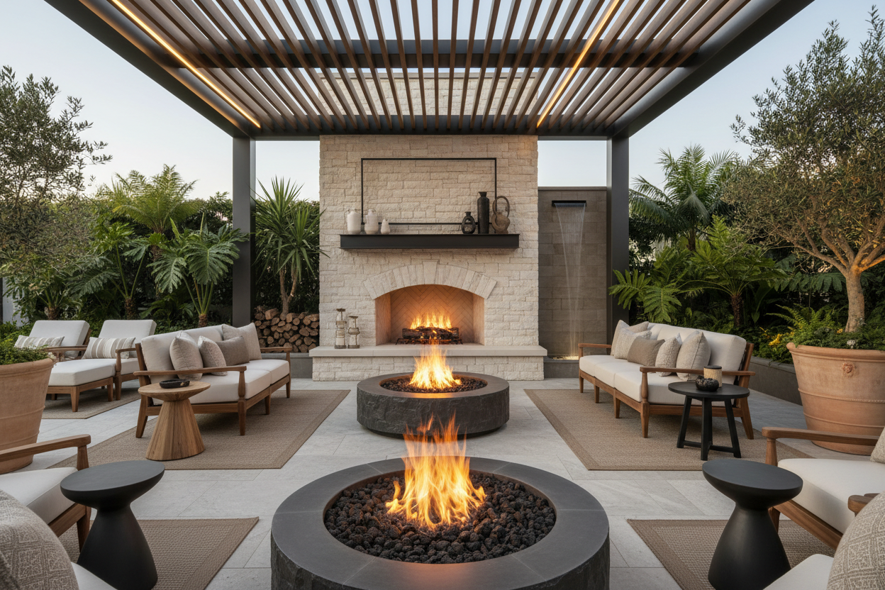 Our collection brings together refined fire features and architectural structures designed to elevate the modern backyard. Each piece is built with premium materials, meticulous attention to detail, and a commitment to creating spaces that invite connection, comfort, and lasting beauty.